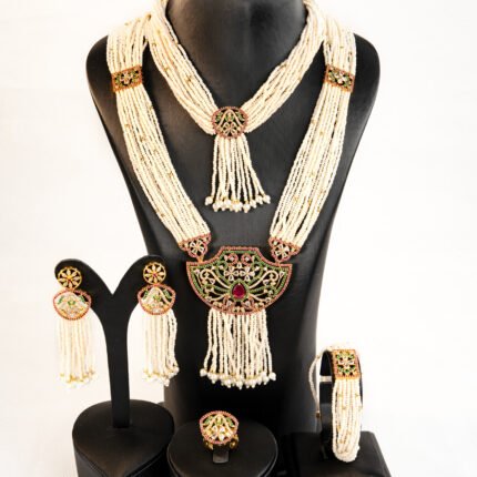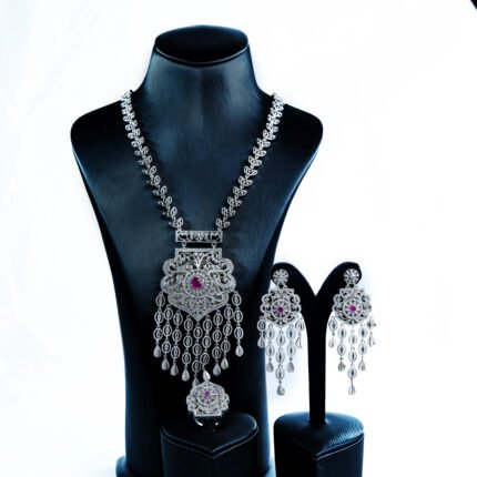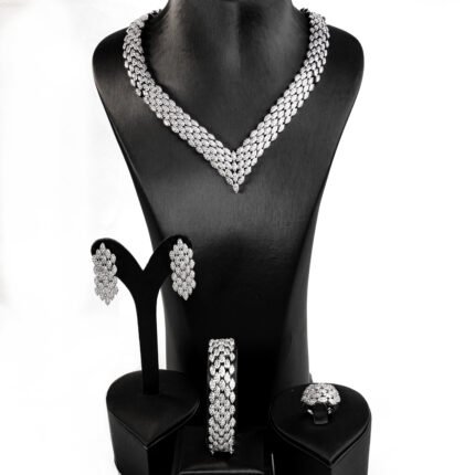 Necklace and earrings with a modern circular design, featuring long-lasting color plating and sparkling zircon stones with a touch of turquoise for a stylish and eye-catching look on any occasion.