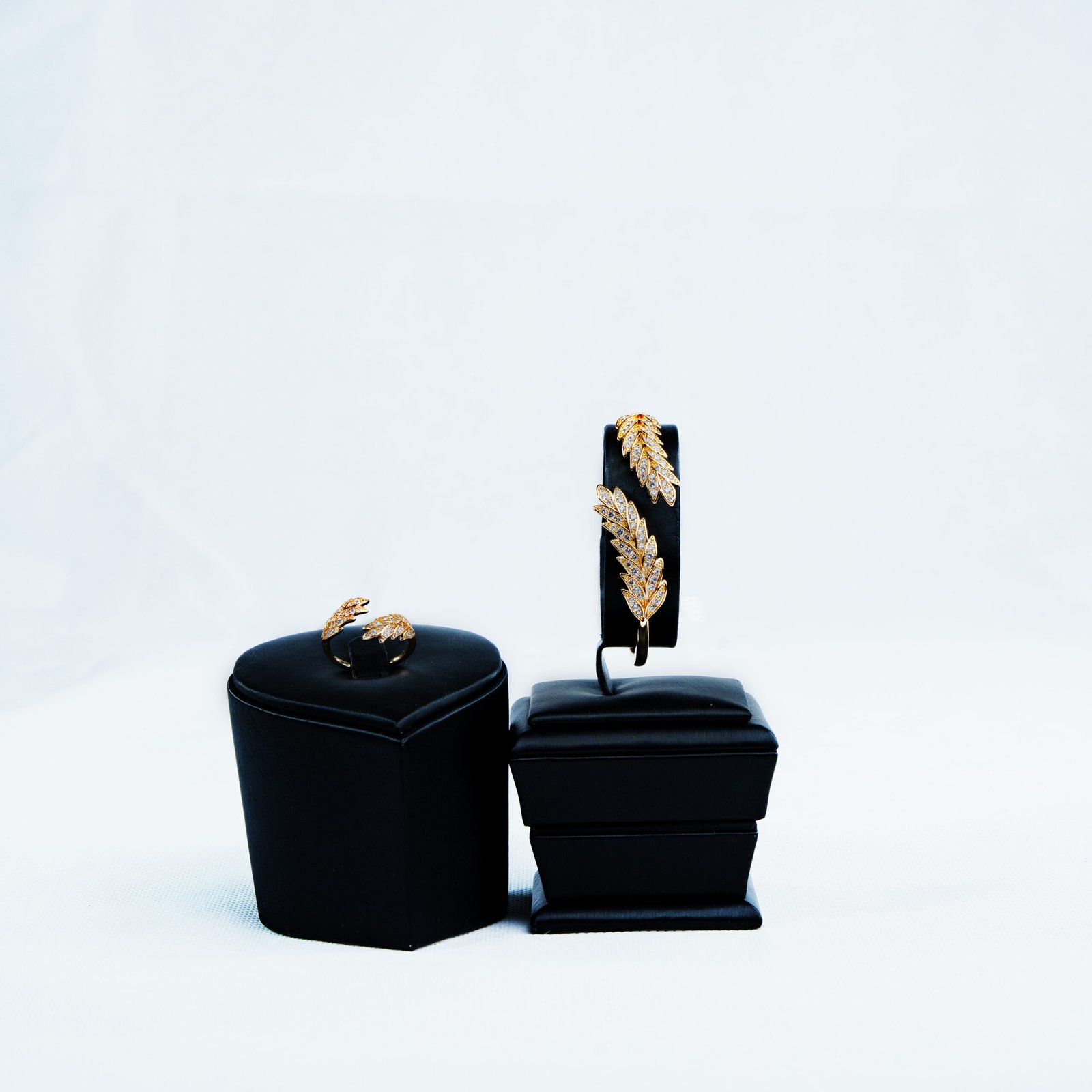 Golden wheat-design bracelet and ring with long-lasting color plating and sparkling zircon stones, adding a luxurious shine and a uniquely elegant look.